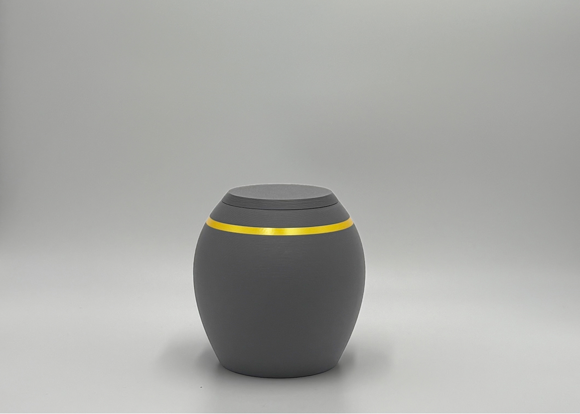 Diese Urne wird im modernen 3D-Druckverfahren aus umveltfreundlichem PLA-Material hergestellt. Der 3D-Druck ermöglicht präzise Formen, individuelle Designs und eine ressourcenschonende Production mit minimalem Abfall. Kleine Oberflächenunregelmäßigkeiten können durch die Schicht-für-Schicht-Technologie entstehen und sind völlig normal - sie machen jedes Stück einzigartig.